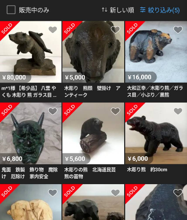 メルカリで似たような木彫りの熊を探してみると、相場がだいたい5,000円〜15,000円程度。(高っ)
