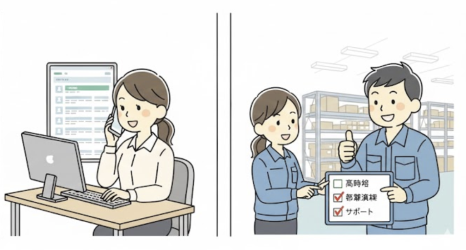 実は、ピッキングや軽作業に特化した派遣サービスを使うと、希望条件にあう求人をまとめて探してもらえるため、ムダな手間をかなり減らせます。
