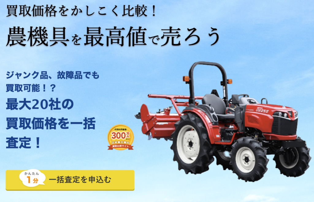 農機具を複数社まとめて査定してもらえるサービスを活用すると、