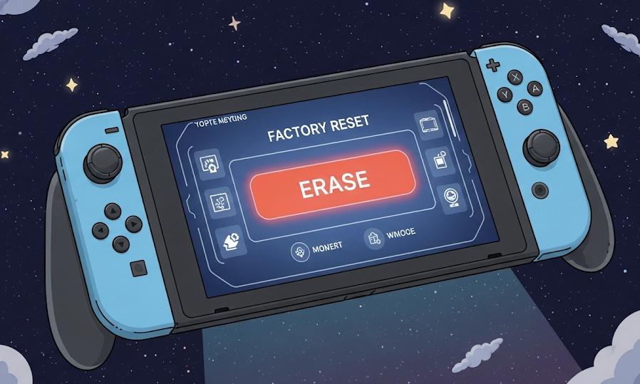 セーブデータやアカウントの準備が完了したら、いよいよ本体の初期化です。 設定から「本体」→「初期化」を選び、「セーブデータを残さず初期化」を実行してください。